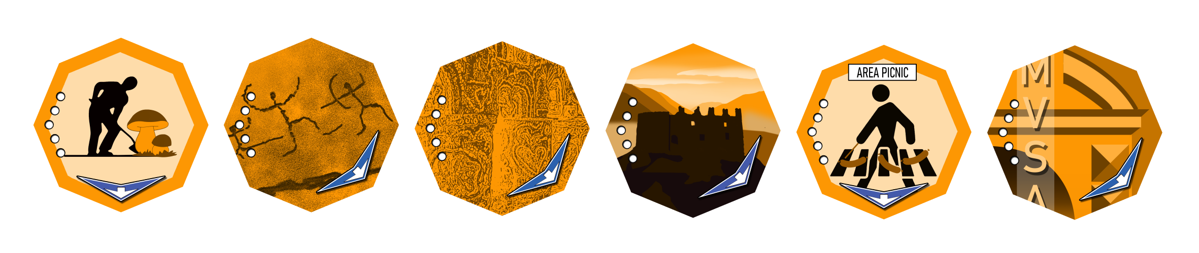 Gli scudi (formato 38 mm) propongono le illustrazioni realizzate da me appositamente per questa edizione.