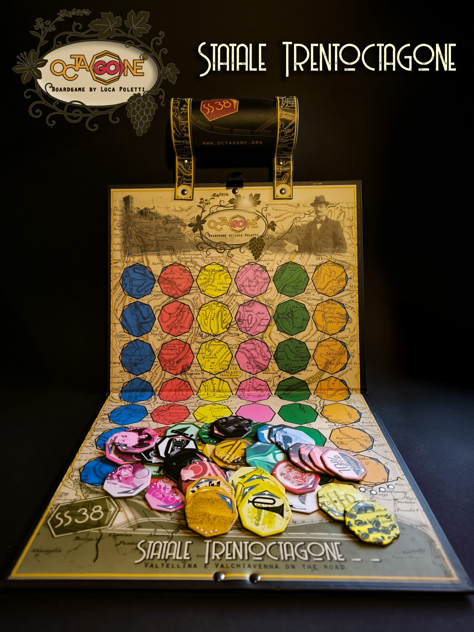 Dalle officine creative Octagone nasce “Statale Trentoctagone” — in breve SS38 — una nuova inspiration del gioco d’autore Octagone dedicata alle alte terre di Valtellina e Valchiavenna.