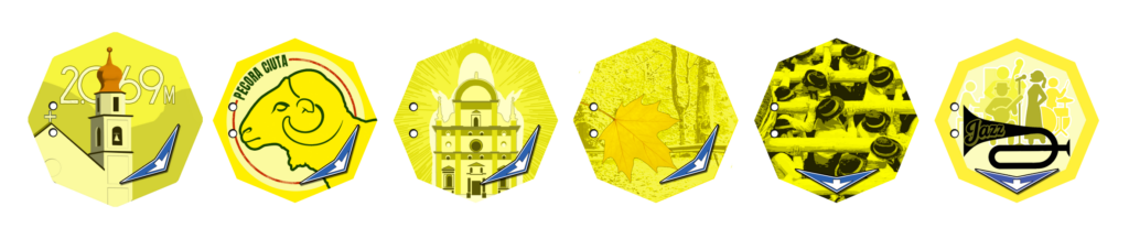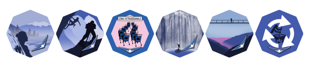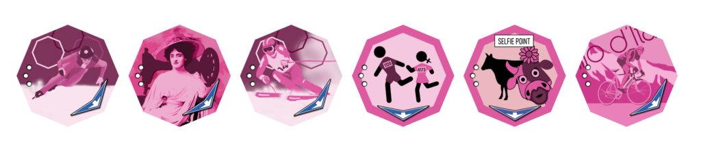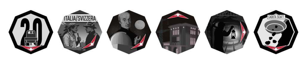 Si parte con la dama bianca (la neve), si incontrano i jolly dal classico colore nero e, tra luoghi reali e pittogrammi reinterpretati con ironia, ogni scudo diventa un piccolo frammento di identità.