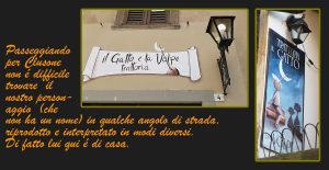 L’affascinante bottega artistica si trova nel pieno centro del bellissimo borgo di Clusone, proprio davanti al magnifico orologio astronomico e in prossimità della famosa danza macabra sita all’esterno dell’oratorio dei disciplini. Entrare nei locali dove un artista pensa e realizza le sue opere per me ha un fascino incredibile! Vedere gli attrezzi del mestiere, i colori, le bozze ed in fine le opere ultimate é un viaggio entusiasmante nella creatività e nell’animo del suo autore.
