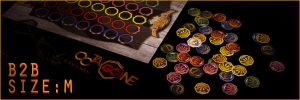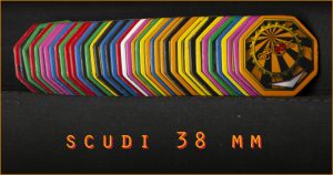 stampa del piano é protetta da plastificazione opaca mentre il retro del piano é rivestito in carta a rilievo di alta qualità . La stessa carta l’abbiamo accoppiata anche al retro degli scudi, che si restringono passando dai 60 mm ai 38 attuali; sempre stampa plastificata a fronte. Novità per i nuovi scudi é il cartone nero riciclato a far da anima, secondo me molto più elegante del classico grigio. All’interno della plancia piegata é presente un sacchetto per contenere le tessere. Regolamento a colori su cartoncino pesante. La “M” indica rigidamente solo le dimensioni di piano e scudi, mentre materiali, grafiche, confezioni e qualsiasi altro elemento potrà variare da un’inspiration (edizione) all’altra a seconda di esigenze o preferenze.