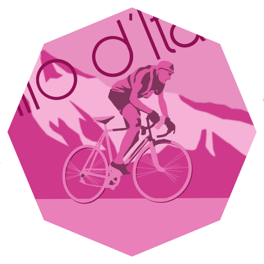 La maglia rosa, la corsa rosa, le pagine rosa che raccontano e la valle che si tinge di rosa al suo passaggio e infine lo scudo rosa dedicato alle tappe più epiche della competizione.